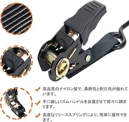 【在庫処分】FFOGG ラチェットベルト タイダウンベルト 2m 幅2.5cm 4本セット 荷締めベルト 破断荷重800kg/本 最大使用荷重225kg ラッシンググベルト タイダウン 引越し 運搬用 ナイロン オートバの検索結果