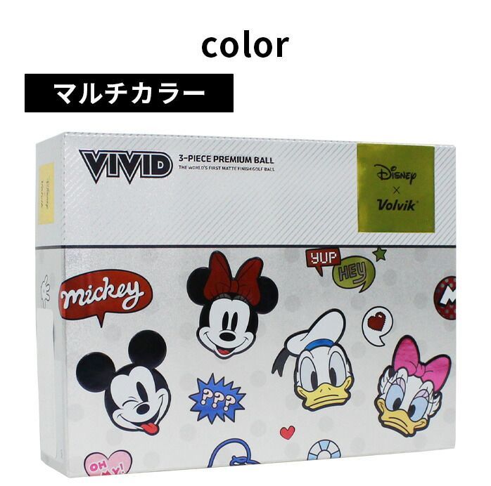 Volvik ボルビック ミッキーフレンズ ゴルフボール マルチカラー 1ダース 12球入り MICKEY&FRIENDS VV59NA86 ミッキー フレンズ 蛍光 発色 視認性 ヴォルヴィック