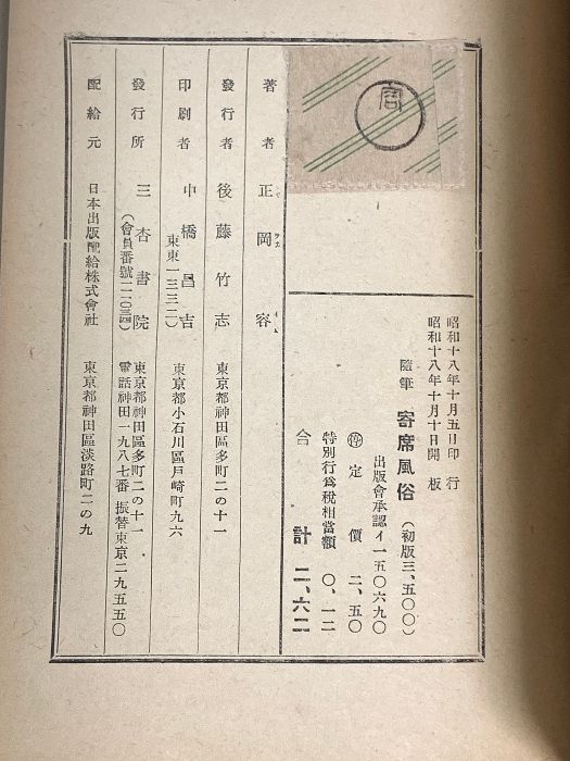 随筆 寄席風俗 昭和18年発行 三杏書院 正岡容の検索結果