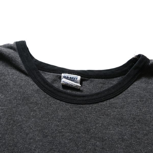00's オールドネイビー コットン リンガー Tシャツ 半袖 (XXL) 霜降り濃灰×黒 無地 00年代 旧タグ オールド ギャップ OLD NAVY GAP Y2K アメリカ古着 USED ビンテージ ヴィンテージ