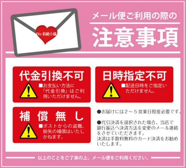 | 備考 | 【返品について】お客様のご都合による返品はお受けできません。 | ||