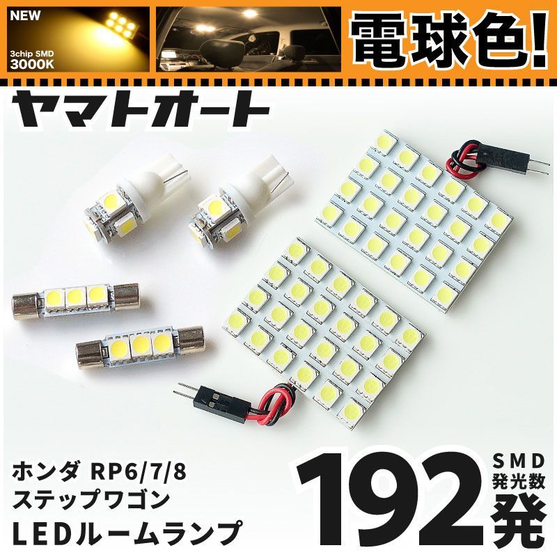 電球色車検対応 車検対応 新型 ステップワゴンSPADA LED ルームランプ RP6 RP7 RP8 [令和4.5~] ホンダ 192発 6点 3000K 室内灯 カスタム パーツ アクセサリ