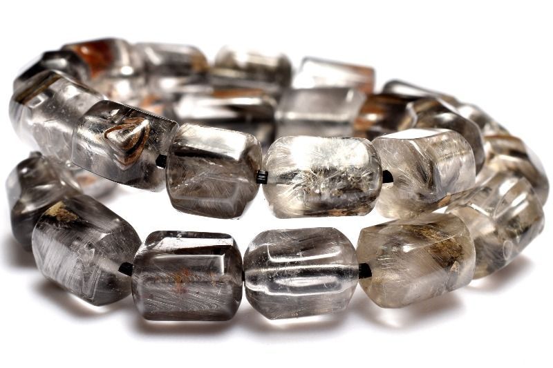 【1点物】AAA+ブルッカイト入り ブラックプラチナタイチンルチルクォーツ 6.5-8x6-6.5mm チューブカット ブレスレット パワーストーン 天然石 _MC2867