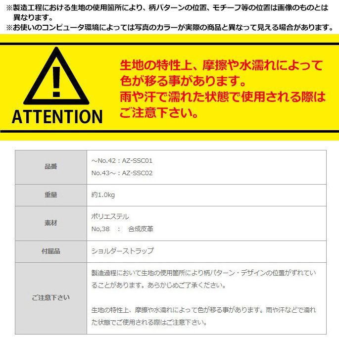 | 商品の特徴 | AZROF⁄アズロフ【サードウェイブ ゴルフ&スポーツ メルカリShops店/AZROF正規販売店】 AZROF アズロフ セルフスタンドキャリーバッグ AZ-SSC02 #160:ドクロブラック 新品未使用品 AZROF(アズロフ) 送料無料アズロフ セルフ スタンドバッグ AZ------------------------------- 人気のAZROF(アズロフ) セルフスタンドキャリーバッグ AZ-SSC01 出品商品は、#160:ドクロブラック(画像1枚目のデザイン)です。 AZROF⁄アズロフ持ち手フック、スタンド付のセルフスタンドバッグ(キャリーケース) 2打目以降のアイアンやウェッジ、パターなどを収納できるのでいちいちカートに戻る必要がなく、スロープレーを防ぐことができます。 ワイルドキャリーバッグ AZROF アズロフ セルフスタンドキャリーバッグ・クラブの置き忘れ防止にも・・ AZROF セルフ スタンドバッグ AZ-SSC02 カラー:ブラック スニーカー柄・グリップの濡れ防止にも・・ ・毎日の練習用のレンジバッグとして・・ 重量 約1.0kg 素材 ポリエステルほか 付属品 ショルダーストラップ ※フードは付属しておりません 特記事項 ※生地の裁断箇所により柄は左右されますので、お届けする商品の柄の配置は写真のものとは異なります。 ※生地の特性上、摩擦や水濡れによって色が移る事があります。雨や汗などで濡れた状態でご使用される際はご注意下さい。 ※お使いのコンピュータ環境によっては写真のカラーが実際の商品と異なって見える場合があります。 ※当店は【AZROF】正規販売店です。 検索用: 男性用 メンズ MEN'S 紳士用 女性用 女子 レディス レディース WOMEN'S ウィメンズ セルフスタンドクラブケース セルフスタンドキャリーケース クラブケース キャリーケース セルフスタンドバッグ ラウンドバッグ ミニスタンドバッグ ゴルフバッグ レンジバッグ 練習場 グリーン周り グリーン回り グリーン廻り ゴルフ |