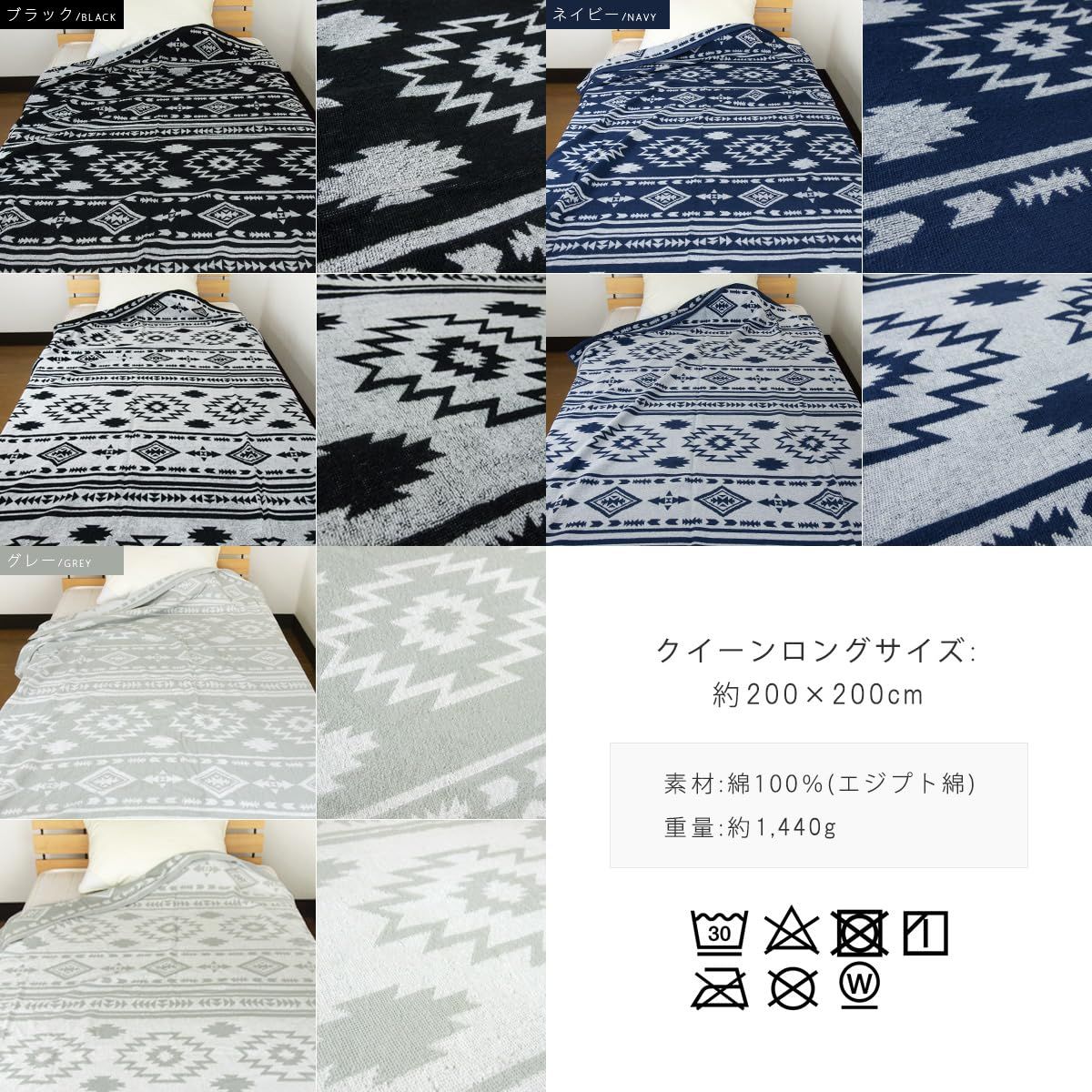【数量限定】エジプト綿100% クイーン オルテガ柄 ジャガード織 タオルケット ソファーカバー 夏用 リヴェール (ネイビー)の検索結果