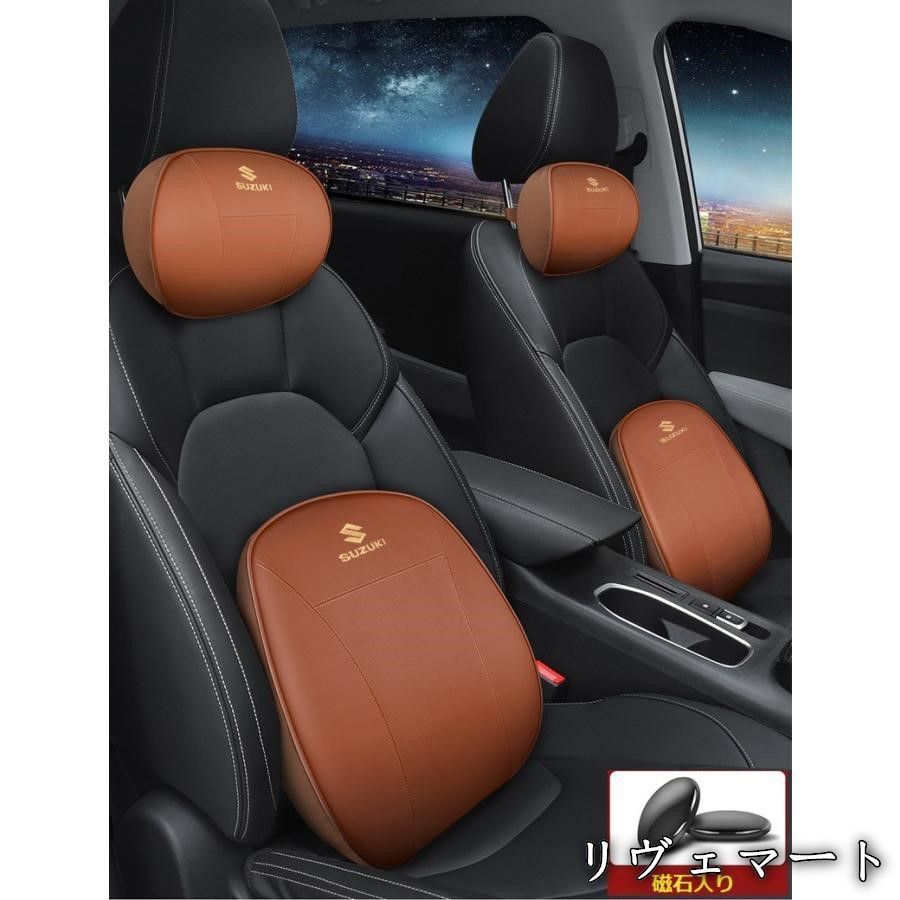 【美品・未使用新品】スズキ SUZUKI 鈴木 ブラウン ネックパッド 低反発ウレタン 腰当て 腰クッション メモリーフォーム PUレザー 疲れ防止 ヘッドレスト 磁石入りA251225