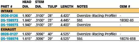NITRIDED バルブ 1984〜99年ビッグツイン:EXHAUST / Oversize (Racing Profile)の検索結果
