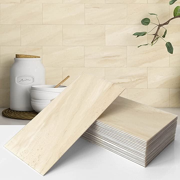 VAOVI タイル 壁 キッチン タイルシール 大理石調 大理石風 シート シートトイレ 玄関 洗面所( ベージュ, 23枚)
