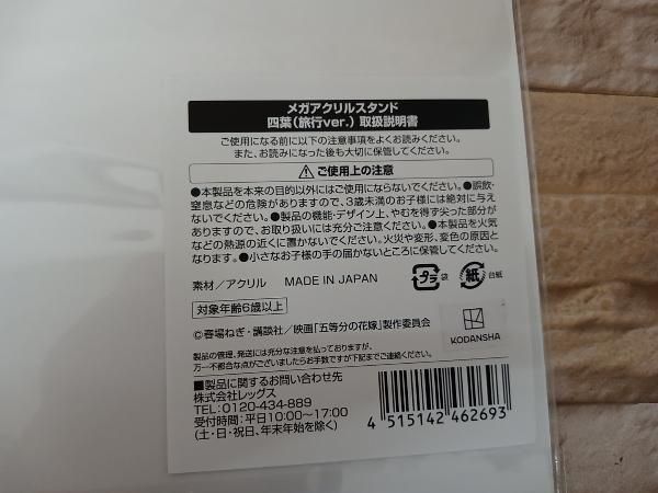 現状品 未使用品 五等分の花嫁 メガアクリルスタンド 中野四葉 旅行Ver.の検索結果