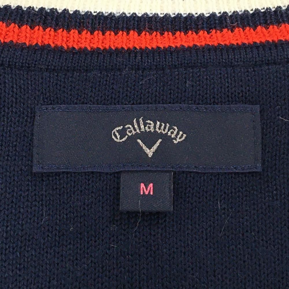 【美品】キャロウェイ セーター ネイビー×白 細ダイヤ柄 胸元ワッペン Vネック ウール混 レディース M ゴルフウェア Callaway