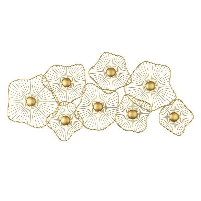 壁掛けオブジェ ウォールデコレーション 花 アイアン アート エレガント 立体的 大きい リビングルーム ダイニングルーム レストラン ショップ ゴールド Kpst138
