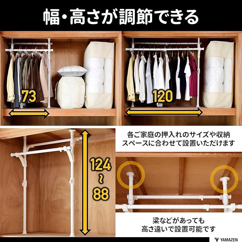 山善(YAMAZEN) 押し入れ ハンガーラック 【全体耐荷重60】 伸縮 (幅73-120×奥行35×高さ88-124) 突っ張り ワンタッチで設置可能 組立品 ブラック WJO-717(BK) 1の検索結果