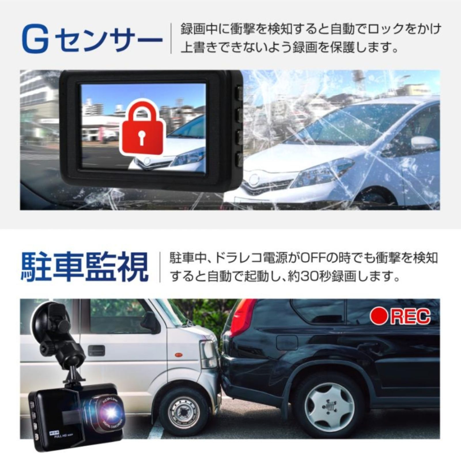 ドライブレコーダー 前後同時 録画 ドラレコ Gセンサー 駐車監視 動体検知 2カメラ 前後 フルHD高画質
