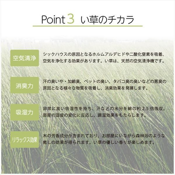 | 商品の特徴 | 国産 い草 日本製 置き畳 ユニット畳 簡単 和室 デザイン アレンジサイズ・色違い・関連商品 国産 い草 日本製 置き畳 ユニット畳 簡単 和室 デザイン アレンジ単品 純国産 い草 日本製 置き畳 ユニット畳 簡単 和室 約82×82×1.7cm(4枚14枚組[当ページ] 6枚組 国産 い草 日本製 置き畳 ユニット畳 簡単 和室 デザイン アレンジ9枚組 国産 い草 日本製 置き畳 ユニット畳 簡単 和室 デザイン アレンジ商品内容 【商品名の色やサイズについて】 商品画像や商品情報には、色違いやサイズ違いの商品が載っている場合がございます。ご注文前に色・サイズ・セット内容のご確認をお願いいたします。 国産 い草 日本製 置き畳 ユニット畳 簡単 和室 デザイン オリジナル【商品説明】 大きなリーフ柄が特徴の置き畳です。 敷き方や向きによって柄の見え方が変わるので、手軽に模様替えが出来ます。 い草には、消臭効果・調湿効果・リラックス効果など、より快適な空間を提供することができます。 さらに、い草生地には抗菌防臭加工を施しています。 隣合わせに並べた際の隙間ができにくいため、埃が溜まりにくくお掃除が楽になります。 家族や友達が一緒にくつろげる空間、子育ての空間にオススメです。 商品スペック 【商品サイズ】約82×82cm4P4枚組 【組成】表地=い草(ヒバエッセンス加工) 中材=ウレタン3mmボード10mm 裏地=ポリエステル100%(滑り止め樹脂加工) 【洗濯表示】洗えません。 【原産国】日本(い草:中国) 【配送日時指定について】 ・この商品は、配送希望日と時間帯をご指定可能です。 ・配送希望日は出荷目安(最長)の3-30日後の間でご指定ください。 ・最短でのお届けをご希望の場合は「指定なし」を選択してください。 ※配送エリア(例:沖縄・離島)により、配送希望日のご指定をお受けしかねる場合がございます。 送料・配送についての注意事項 本商品の出荷目安は【2-4営業日※土日・祝除く】となります。 お取り寄せ商品のため、稀にご注文入れ違い等により欠品・遅延となる場合がございます。 本商品は仕入元より配送となるため、北海道・沖縄・離島への配送はできません。 商品番号:ds-2445875 |