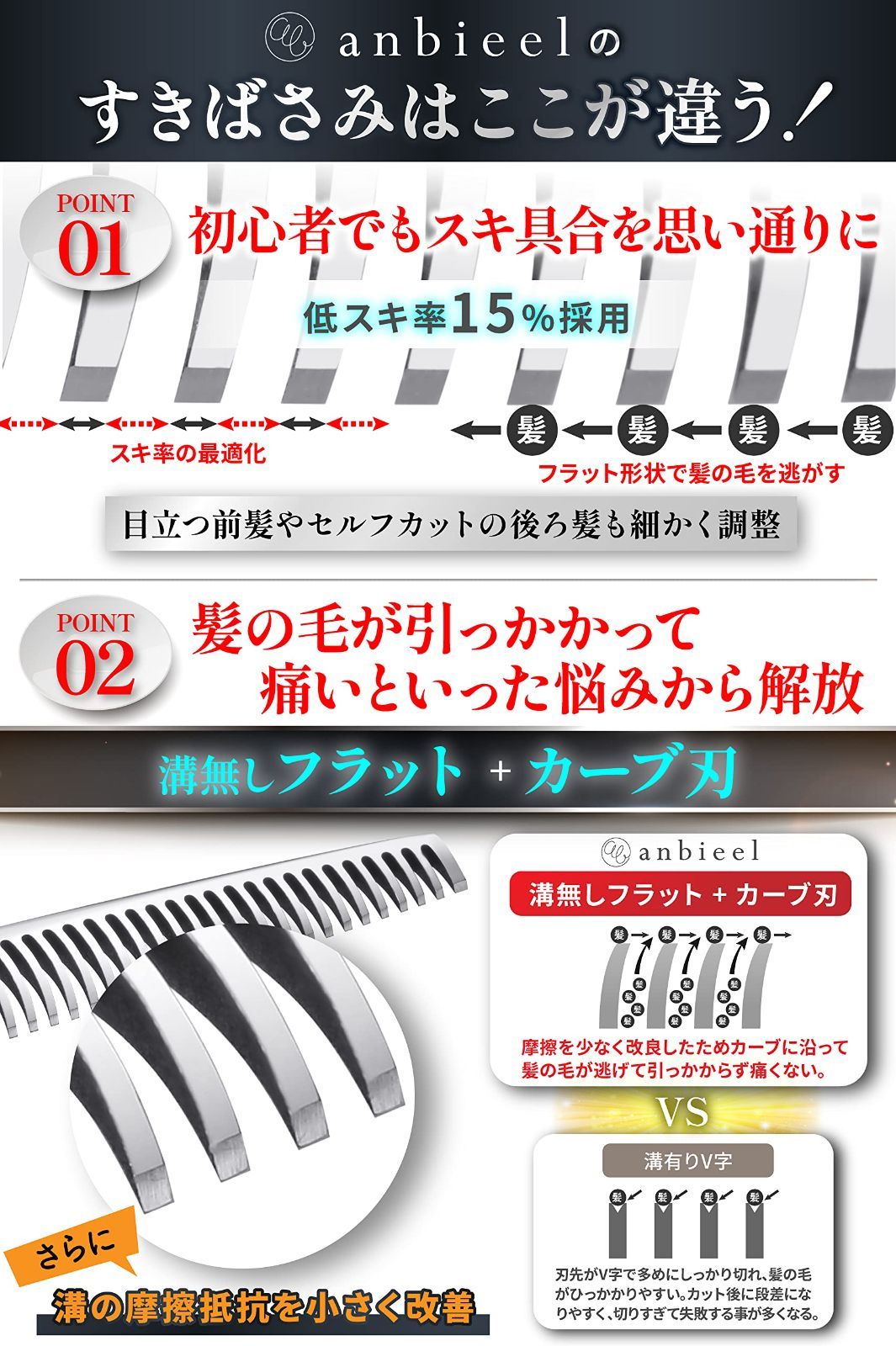 | 商品の特徴 | ご覧いただきありがとうございます。 (現役プロ美容師が総監修) 散髪 ハサミ すきばさみ セット 低 すき率 髪切りハサミ セルフカット 【失敗しにくい低スキ率15%採用】一般的なスキ率20%~30%以上のすきばさみでは、切りすぎて失敗しやすくなってしまいます。そこで当店のすきばさみは失敗しにくい15%という低スキ率を採用。スキ率を抑えることによって、少量ずつ毛量を調整し“スキすぎる”ことなくカットができます。初心者の方でも失敗するリスクをおさえ、安心してセルフカットができます。 【髪の毛に引っかからない溝無しフラット+カーブ刃】すきばさみは刃先を溝なしフラットにすることで髪の引っ掛かりをなくすだけではなく、独自形状のカーブ刃を取り入れさらに摩擦を少なく改良。髪の毛が逃げて引っ掛からず痛みを感じないように開発いたしました。 【切れるのに失敗しない”スライディングカット技術”】セルフカットでは、少しずつ微調整しながら切り進めることが大切。従来の散髪ばさみは、刃を入れるとすぐばっさり切れてしまうため失敗しやすくなっていました。anbieelの散髪はさみは、髪の毛が一度刃に沿ってスライドしてから切れる”スライディングカット技術”を採用。切れ味はいいのに失敗するリスクを減らすことに成功しました。 【”サクッ”と切れる刃の秘密は研磨工程】非常に鋭利な切れ味を持つanbieelのはさみ。「セルフカット用のはさみは切れ味が悪くて使いにくい」悩みを解消するため、切れ味を徹底的に高める4つの研磨工程を経て出荷しています。 素材は耐久性に優れた高品質の”4CRステンレススチール”を採用。焼き入れを行い、高度と靭性を強化し「切れ味のよさ」を追求いたしました。 【プロ美容師総監修のセット】散髪ばさみ すきばさみ クリップ(2本) ねじまわし コーム クリーニングクロス 美容師総監修のヘアカットマニュアル 収納・持ち運びに便利なレザー収納ケース の計8点をお届けします。anbieelのはさみセットは美容師歴15年の現役プロ美容師が総監修。80種類以上の調査を経て選んだプロが認める『抜群の切れ味』で『使いやすい』ハサミです。初心者の方に安心して使い続けてもらえるようセット内容にもこだわりました。 材質 ステンレス鋼 ブランド anbieel スタイル 散髪 ユニット数 1.00 個 最後までご確認頂き誠にありがとうございました。 上記をご確認頂き、ご購入いただけましたら幸いです。 何かご不明な点がございましたらお気軽にメッセージからお問い合わせ下さい。 |
