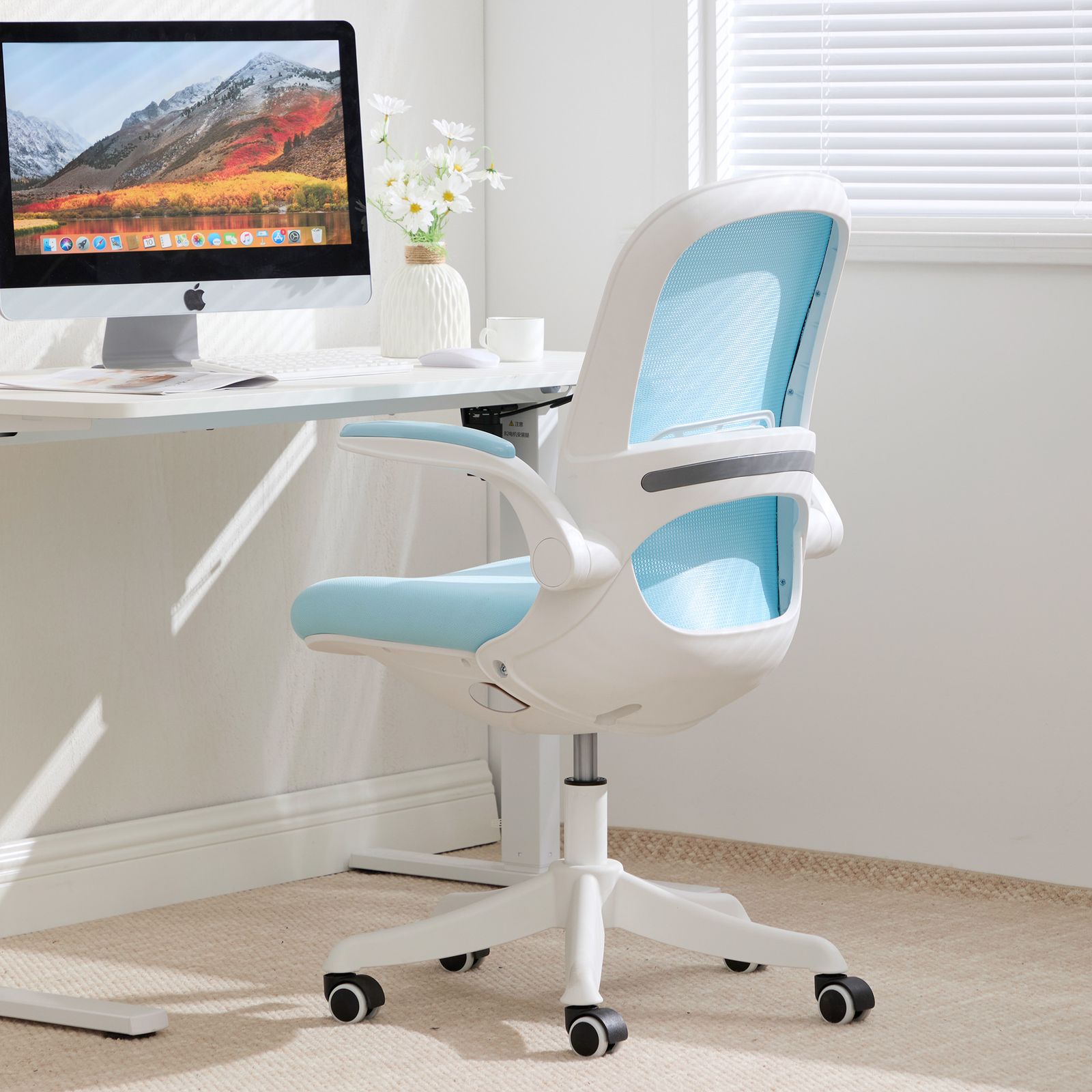 「数量限定セール」オフィスチェア デスクチェア 椅子 ゲーミングチェア ゲームチェア パソコンチェア おしゃれ 通気性メッシュ 腰サポート 跳ね上げ式アームレスト ブルー