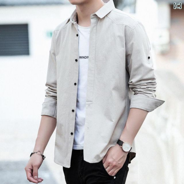 [3XL]メンズ ファッション 服 オシャレ シンプル 大人 かっこいい 大きいサイズ ストリート 紳士服 長袖 シャツ 韓国 スタイル 春秋 綿 スリム カジュアル ゆったり 無地 ジャケット
