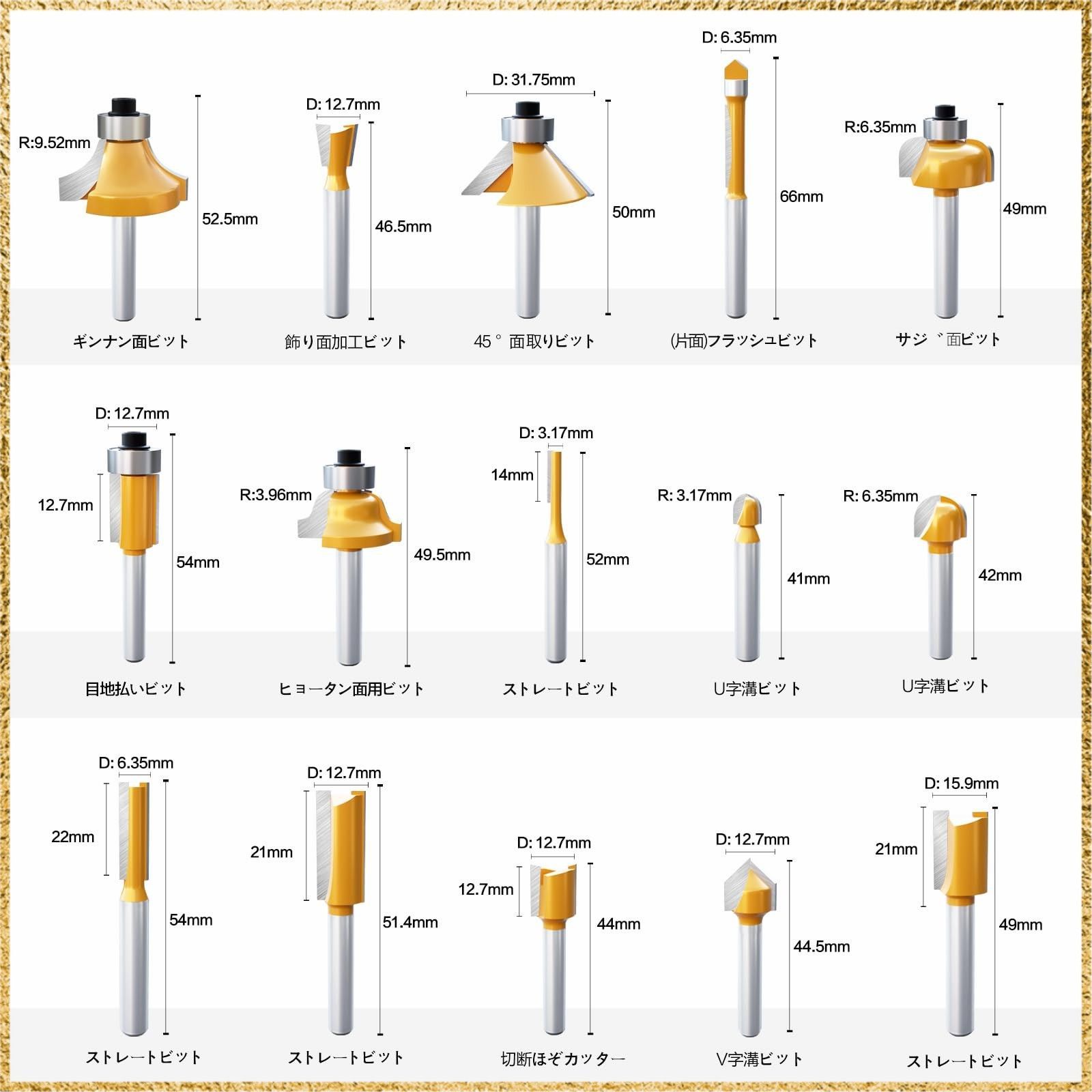 送料無料15本組 CSOOM プロ木工トリマービットセット 超硬ルーターセット 15本組 軸径6mm木工工具のルータビットセット 木製収納ボックス付きの検索結果