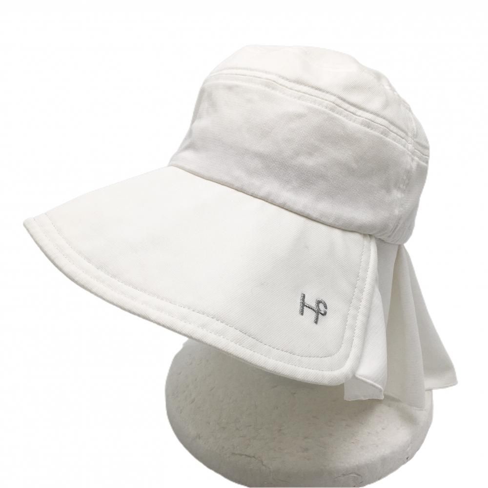 【超美品】ヒールクリーク つば広ハット 白 首日除け ドローコード レディース 40 ゴルフウェア Heal Creek