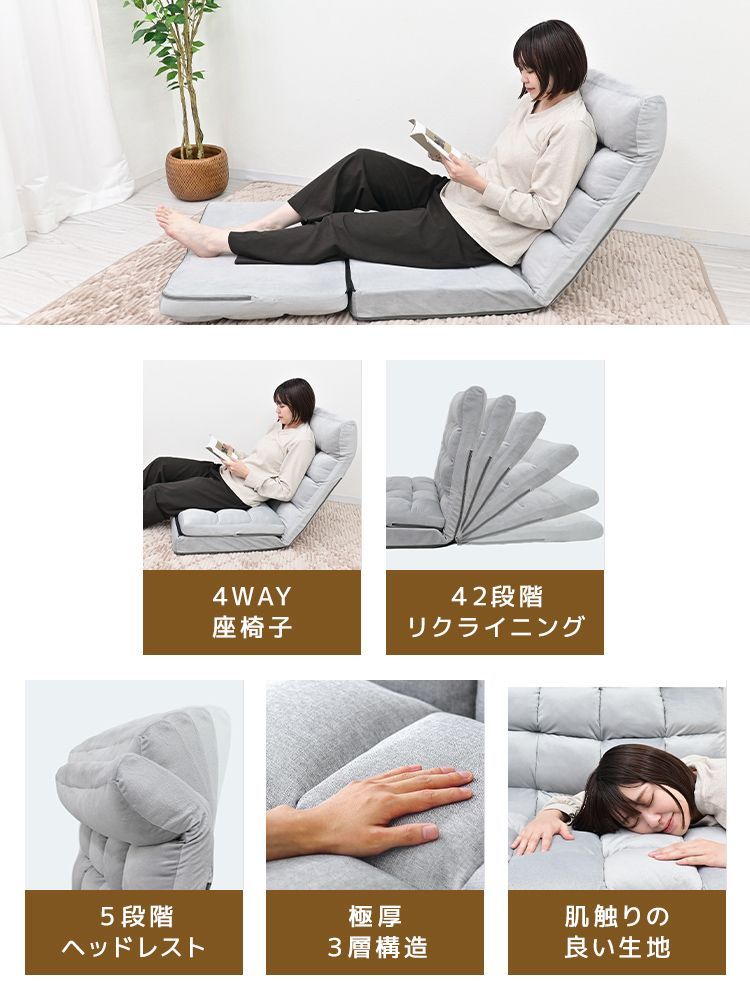 【レギュラーサイズ】座椅子 4way 超ロング180cm ヘッドリクライニング ハイバック コンパクト 42段ギア リクライニング 一人掛け リクライニング座椅子 チェア チェアー ソファ ソファベッド