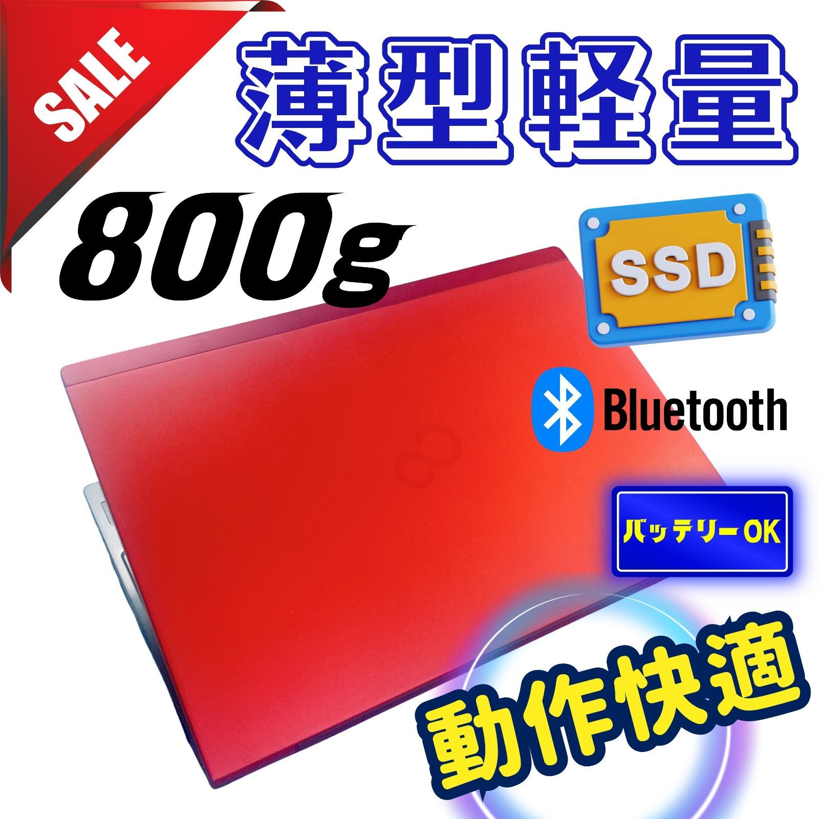 497✨薄型軽量 / LIFEBOOK /高速SSD /8GB /オフィス付/ 赤✨すぐ使えるノートパソコン