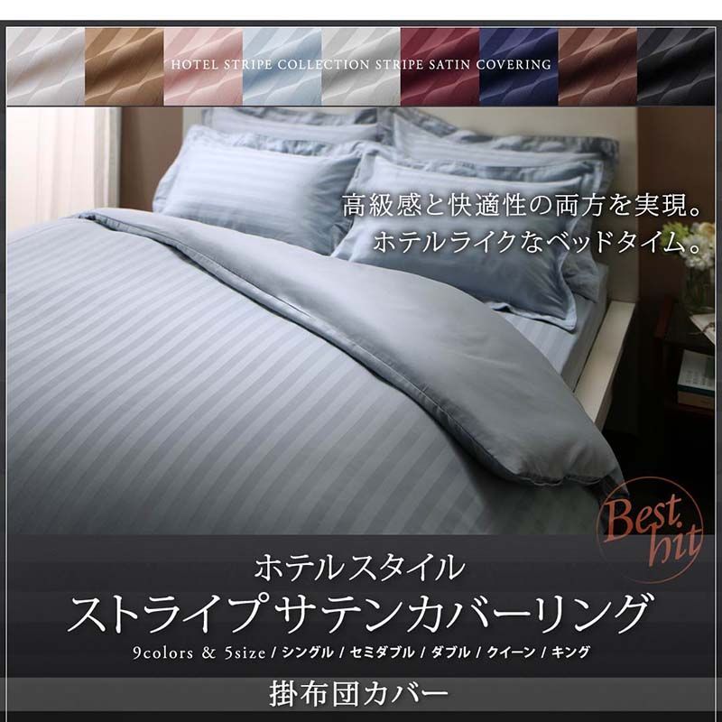 9色から選べるホテルスタイル ストライプサテンカバーリング 掛け布団カバー 【セミダブル】 高級感 快適性 贅沢な肌触り さらさら 上品 リバーシブル オールシーズン しわになりにくい 乾