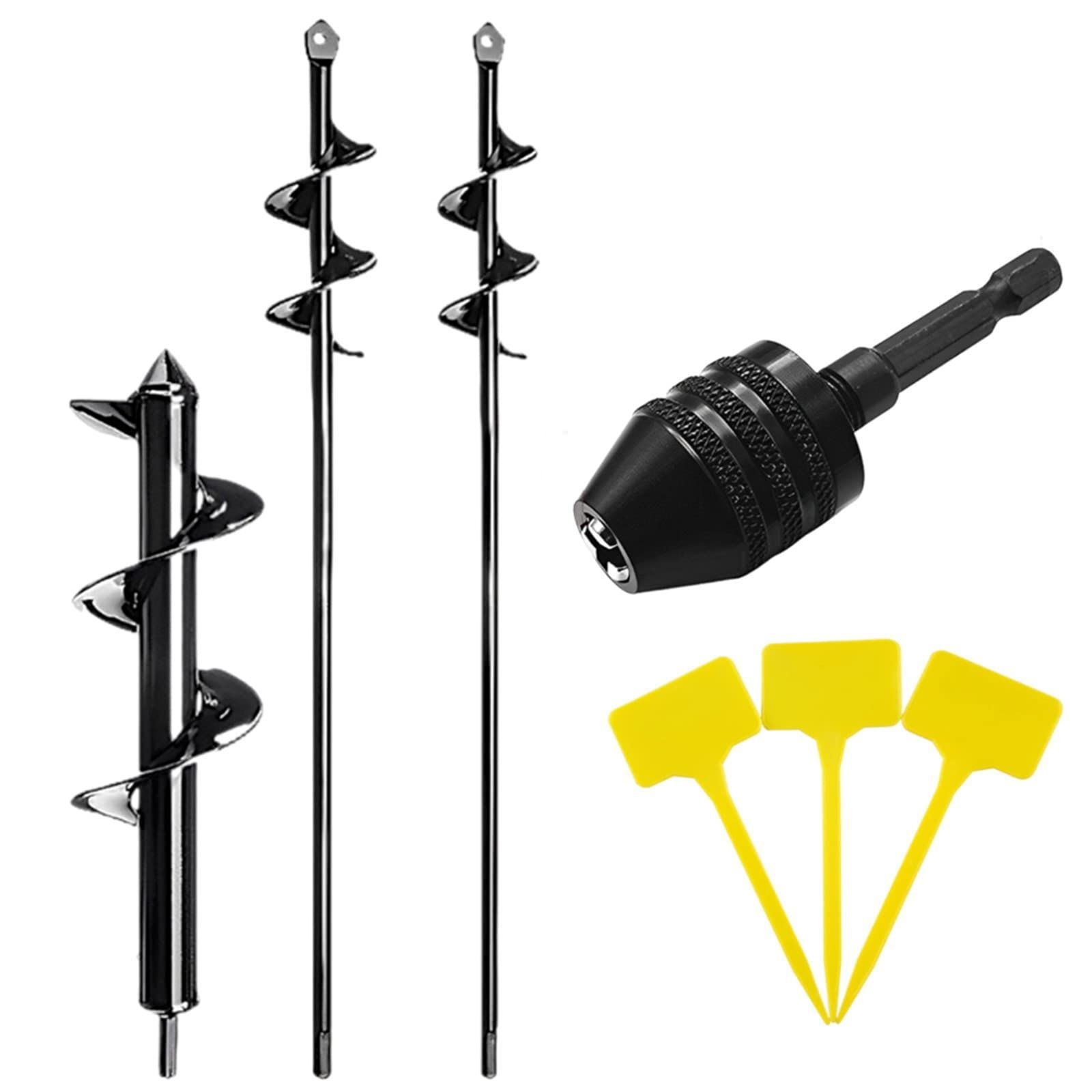 4,5,8cm,ドリルチャック,園芸名札セット heizi アースドリル アースオーガー 園芸用 ドリル 支柱 ポール 下穴 電動工具 穴掘り (4,5,8cm,ドリルチャック,園芸名札セット)