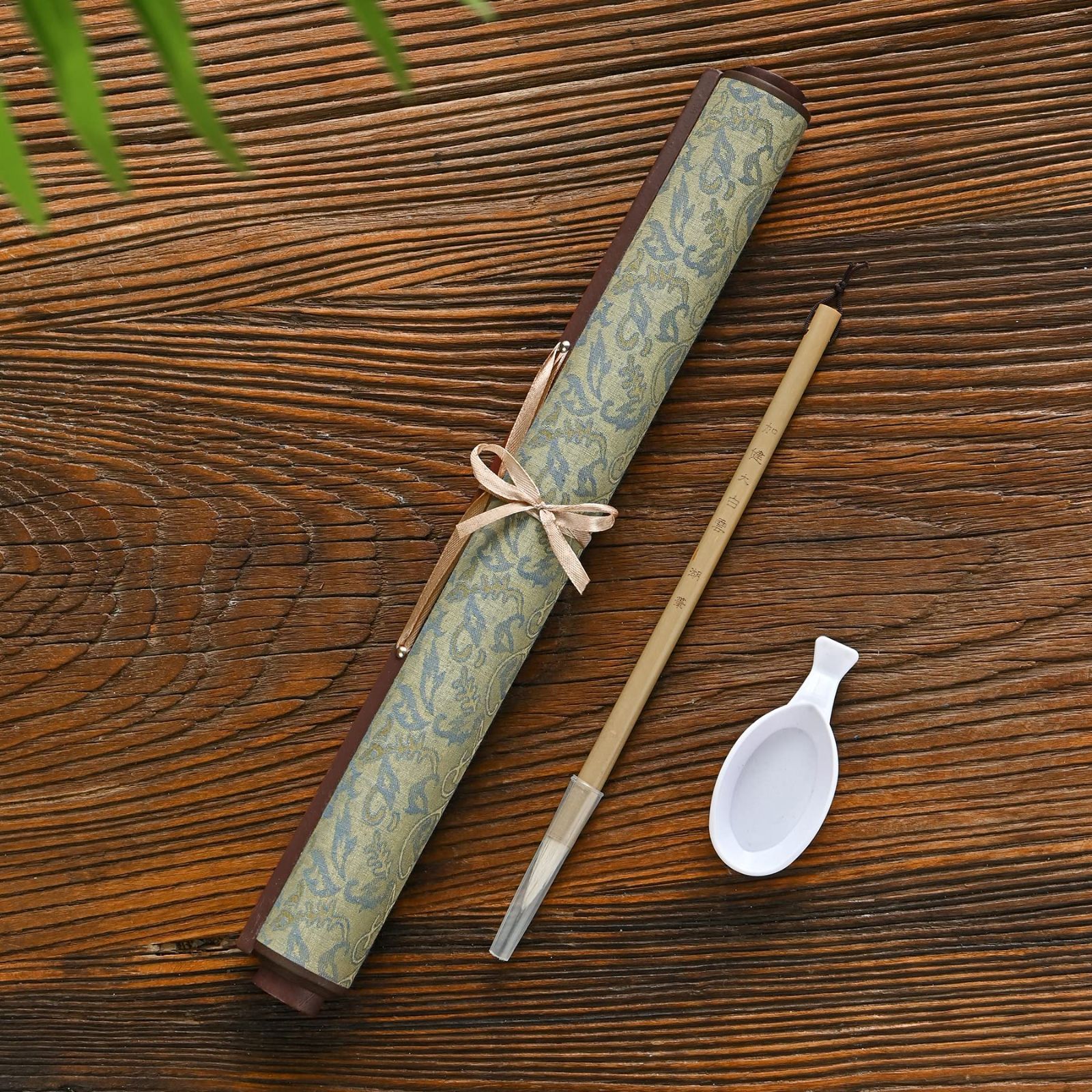 絹生地空白 水書き 書道セット 墨汁 不要 水だけで書ける 不思議 な 習字 練習 用具 水書布 大きいサイズ( 書き初め の 練習 に最適 )37cm×85cm 筆と水皿付き