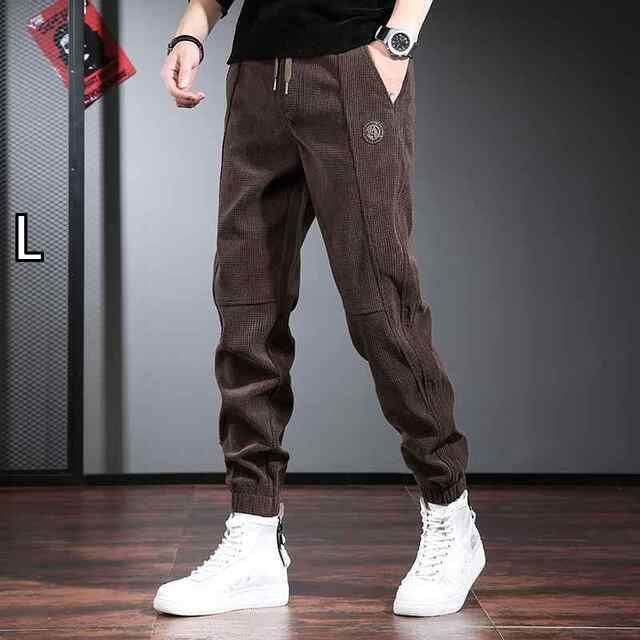 [L]メンズ ファッション 服 男性用 オシャレ シンプル 大人 かっこいい 大きいサイズ ストリート 紳士服 春秋 カーゴ パンツ カジュアル パンツ アンクル タイ ストレート コーデュロイ スポ