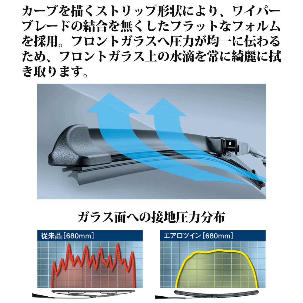 | 商品の特徴 | ※画像は特定車両用品番のサンプルです。 ※店頭在庫、メーカー在庫が共に欠品していた場合は発送までにお時間を頂戴する場合がございます。 ※商品名には全ての適合条件が書かれておりません。詳しい適合については下の適合車両記述部をご確認ください。 ※離島への発送は現在対応しておりません。 商品説明 ・拭き取り性能にこだわった、国産車用フラットワイパー。 ・カーブを描くストリップ形状により、ワイパーブレードの接合部を無くしたフラットなフォルムを採用。フロントガラスへ圧力が均一に伝わるため、フロントガラス上の水滴を常に綺麗に拭き取ります。 ・最新のグラファイトを配合した天然ゴムにより、ガラス面との摩擦の大幅な軽減を実現。動作音や不快な振動が低減し、より静かになりました。 ・エアロダイナミックフォルムによる全面スポイラー構造により、すべての天候に対応してクリアな視界を確保できます。*降雪状況や気候状況に応じて、適切に冬用ワイパーをご使用ください。 適合車両 ・メーカー:NISSAN/ニッサン ・車名:LAFESTA HighwaySTAR/ラフェスタ ハイウェイスター ・型式:CWEAWN/CWEFWN/CWFFWN ・年式:H23.06~H30.03 商品情報 ・分類:ワイパーブレード ・メーカー:BOSCH/ボッシュ ・品名:AEROTWIN J-FIT(+)/エアロツイン J-フィット(+) ・区分:フロント2本セット ・品番:AJ65/AJ40 |