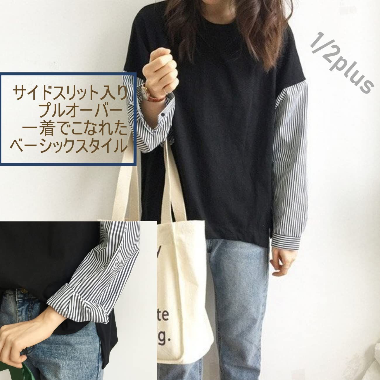 【人気商品】ドッキング ストライプ 袖 レイヤード ブラウス シャツ 風 t [ニブンノイチプラス] レディース [1/2plus]の検索結果
