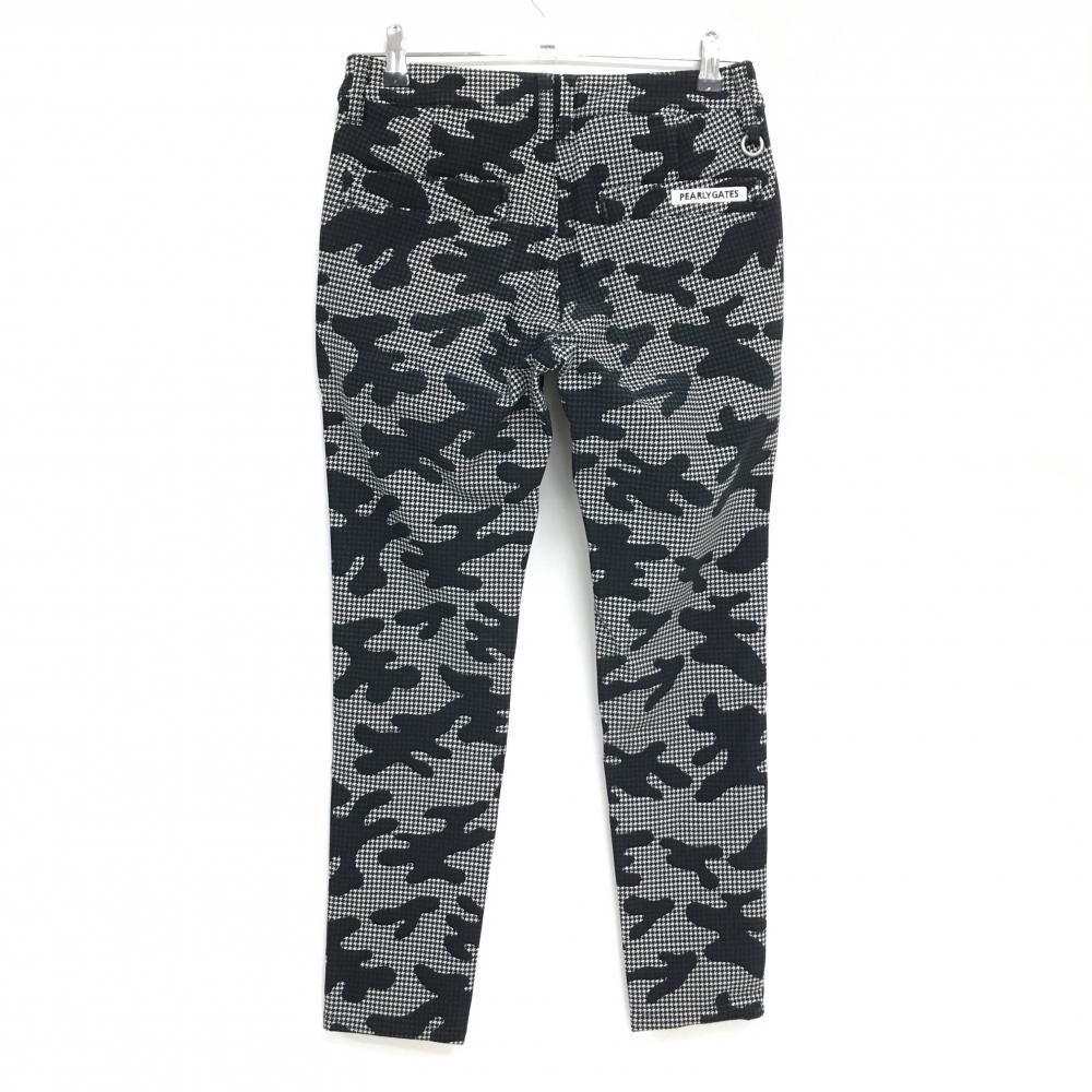 【美品】パーリーゲイツ ストレッチパンツ 黒×白 千鳥格子 迷彩調 裏起毛 30周年 レディース 1(M) ゴルフウェア PEARLY GATES