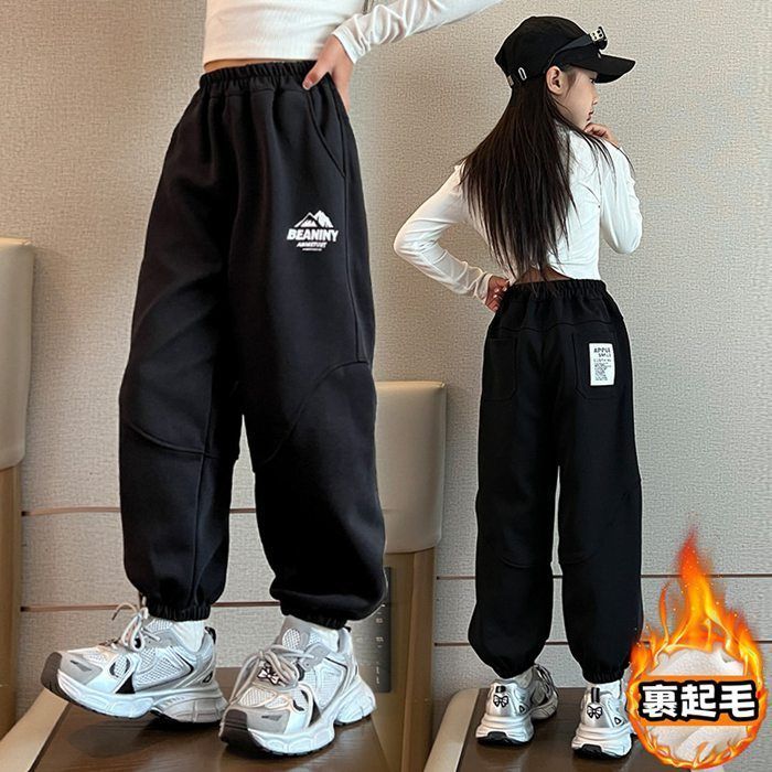 子供服 女の子 ロングパンツ ジュニア ボトムス 裹起毛 長ズボン ゆったり シンプル ウエストゴム ポケット付き スポーツ ゆったり ボトムス 普段着 カジュアル シンプル 秋冬 byp8258