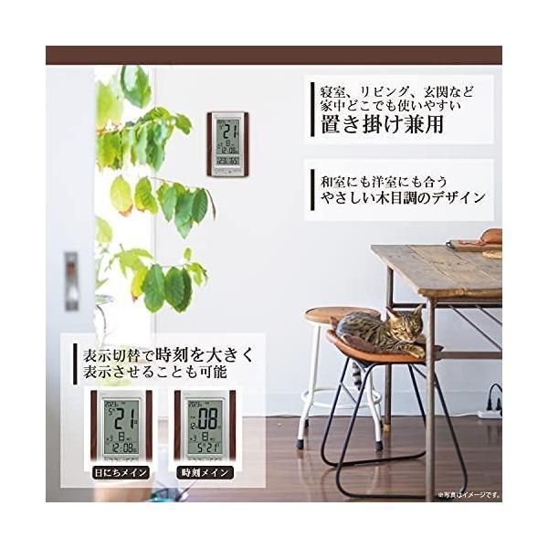 フォルミア(Formia) 置き時計 日めくりカレンダー 電波時計 表示切替機能付き 六曜 温度 湿度 表示 置き掛け兼用 木目調 ブラウン