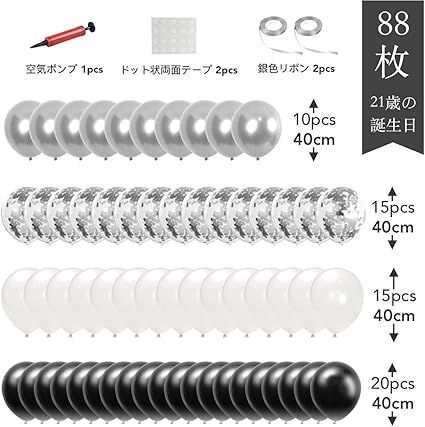 88枚 21歳 誕生日 飾り付け 風船セット 数字バルーン 組み合わせ 「HAPPY BIRTHDAY」ランド ハート風船 紙吹雪風船 ドットシール 装飾 パーティー お祝い サプライズ シルバー&ブラック 男の子 の検索結果